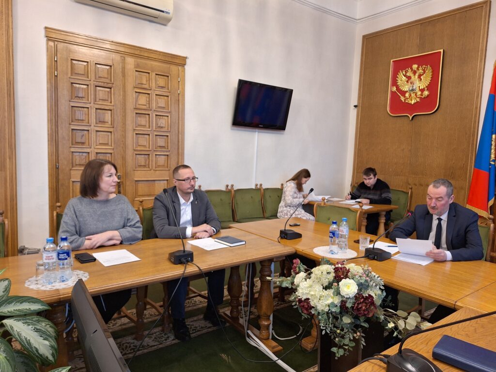 | Состоялось заседание комиссии по регламенту и этике Председатель комиссии Максим Черствов, сохранивший свой пост с прошлого созыва, провел для новичков краткий экскурс по предметам ведения и функционалу комиссии. После чего предложил на должность своего заместителя депутата Ивана Пророкова. «Честный, неравнодушный, участник СВО, пример для избирателей», - так охарактеризовал коллегу председатель. Предложение поддержали единогласно. Члены комиссии также проголосовали за внесение изменений в решение Думы, определяющее специально отведенные места для проведения встреч депутатов со своими избирателями. Кроме перечня помещений и мест, которые органы местного самоуправления в соответствии с Федеральным законодательством определяют для таких встреч, предлагаемые изменения определяют, что в качестве специально отведенных мест на территории областного центра могут использоваться внутридворовые территории. При этом уточняется, что проведение встречи депутатов с избирателями не причинит неудобств гражданам, не создаст помех пешеходам и транспорту.     |